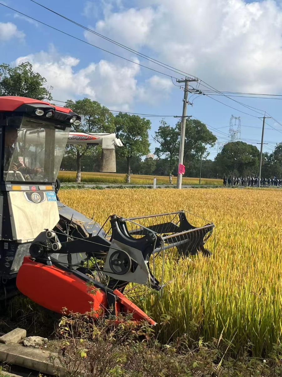 穿行在嘉北郊野公园,无边的稻浪在秋风里低语。我第一次拿起镰刀,躬身走进田间。刀刃划过稻秆发出清脆声响,稻谷在手中沉甸甸的,散发着阳光的味道。