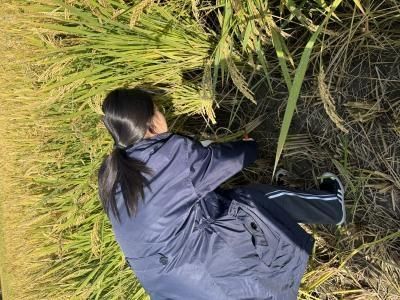 导游带着我们先来到稻田,金黄的稻穗压弯了秆。农民伯伯示范后,我们学着他的样子,左手握住一束稻秆,右手捏紧镰刀贴住根部,用力一拉,“唰”的一声,稻穗便握在手里。一开始我总割不齐,还差点划伤手,身旁的同学连忙过来教我调整姿势。慢慢熟练后,我们分工合作,有的割稻,有的把稻穗归拢成堆。