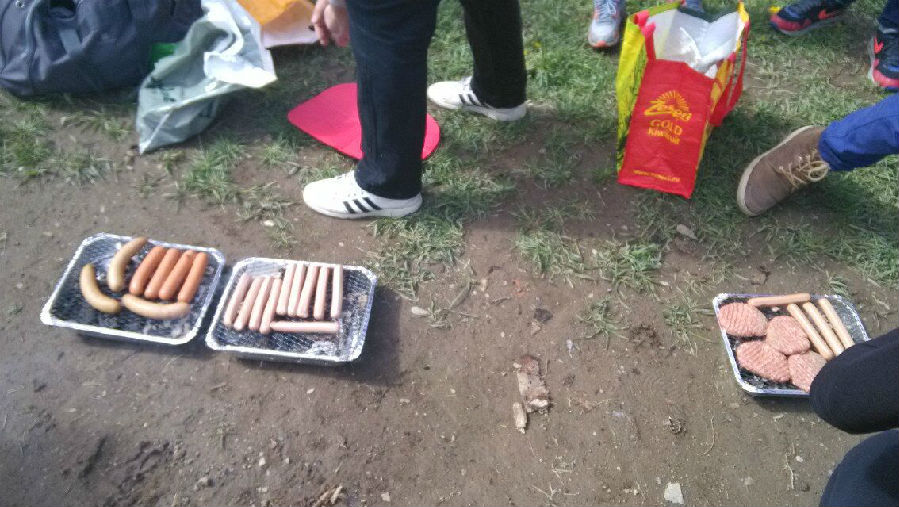 我们有好多活动,这是我们在野外进行BBQ的画面。那天阳光明媚,凉风瑟瑟。并且进行了一些户外游戏。运动完后,他们在那边烧烤,我们也就尝试了一下,最后居然烤糊掉了。自己烤的跪着也要把它吃掉啊啊啊。。。还好有面包包着一起吃的。。。