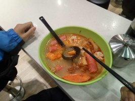 麻辣烫超爱的,在寒冷的冬天吃一碗麻辣烫,既方便又可以保暖,热气腾腾的麻辣烫让全身都暖了,和同学边吃边聊天,一天不好的情绪全忘记,美味的麻辣烫里有着不同的美味,全是自己喜欢吃的,一口一口吃地很满足,很幸福!!