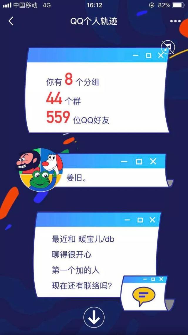 根据注册时间的不同,H5页面中对话框的样式也会随之改变,旧款UI满满的年代感把用户带回那个青春岁月。另外,你换过几次头像,有过多少个好友分组、群等,都一一清晰记录。