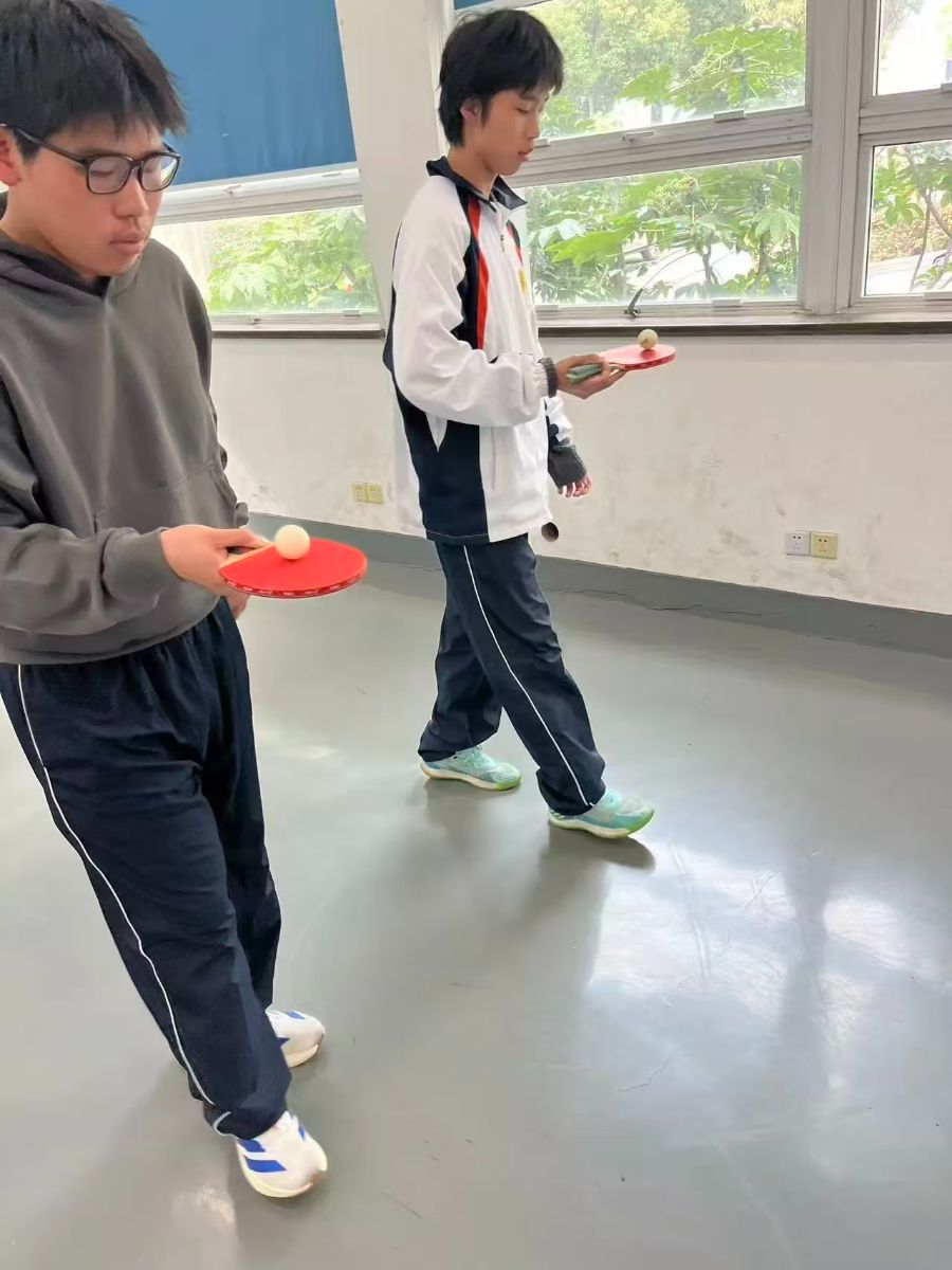 2. 转圈结束后,参赛者需用球拍托着乒乓球,行进至50米外的指定框处,将球放入框中。此过程需折返循环执行三次,直至将三个乒乓球全部放入框中。