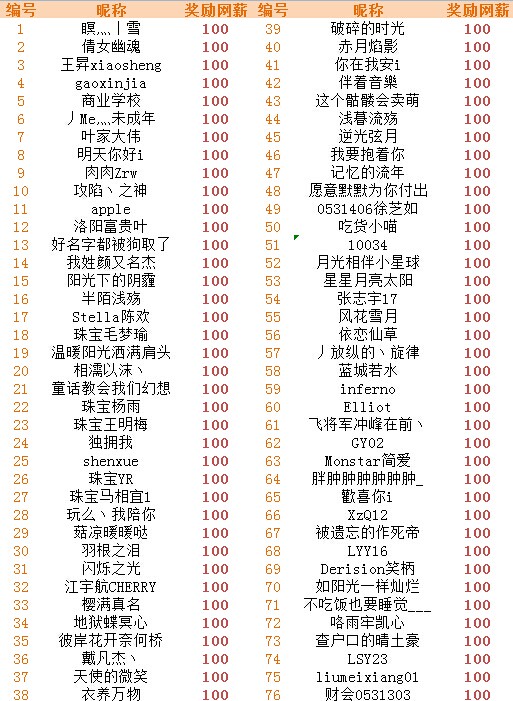 注意: 昨日积极响应的同学们!100网薪已经发放拉!