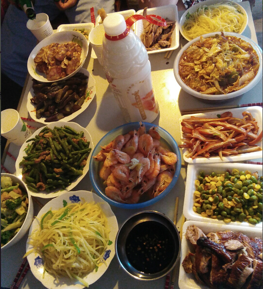 这是国庆我们一家人围坐在小桌边吃饭。终于不是爸爸妈妈上班哥哥姐姐不定时才回家而我又住在学校了。那天姐姐忙活了一中午为我们准备了一桌菜肴, 即便不像餐馆里那样丰盛美观,但全家人也都很开心。那样其乐融融温馨的场景在我们家也只有逢年过节才会有的 所以很值得珍惜。